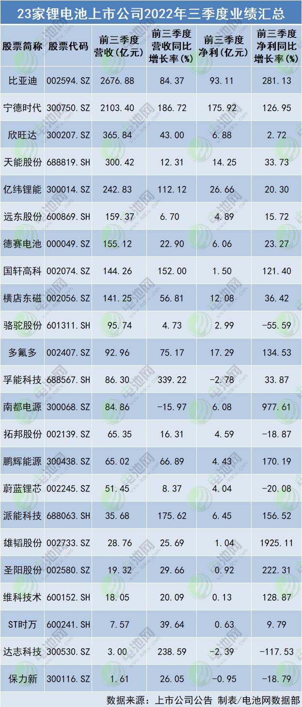 淨利方(fang)面,23家上市公司(sī)中20家淨利潤爲(wei)正值,淨利總額(e)👣383.81億元💘,平均淨利(li)潤16.69億元,其中比(bi)亞迪、甯德時代(dai)、億緯锂能、多♋氟(fú)多、天能股份、橫(héng)店東磁淨利超(chao)10億元,甯德時代(dai)淨利達175.92億元;18家(jiā)淨利同比正增(zeng)長,其中,比亞迪(dí)、雄韬股份、南都(dou)電🌈源、聖陽股🙇♀️份(fèn)、鵬輝能🙇♀️源、派能(neng)科技、多氟多、維(wéi)科技術、甯德時(shí)代、國軒高科10家(jiā)實現淨利同比(bi)翻倍增長,雄韬(tao)股份淨利同比(bi)增長超19倍。