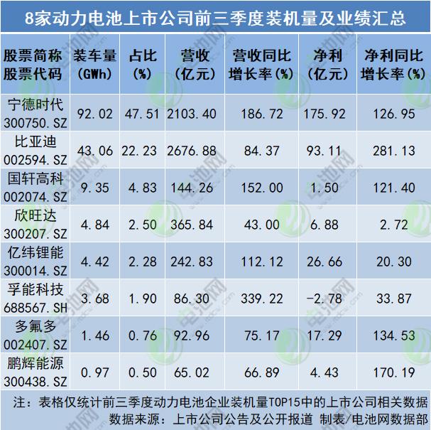 除中創新航未(wei)公開披露三季(jì)報,電池網注意(yì)到,動力電‼️池企(qǐ)業業績迎來盈(ying)利修複。前三季(ji)度,8家動力電池(chi)上市公司營收(shou)總額5777.49億元,平均(jun1)營收722億元,其中(zhong),甯德時☀️代、比亞(yà)迪營收超2000億元(yuan),甯德時代、國軒(xuān)高科、億緯锂能(néng)、孚能科技營收(shōu)同比💞增長翻倍(bei),孚能科技營收(shōu)同比增長超3.3倍(bei);利潤😍總額323億元(yuán),平🌈均淨利40.38億元(yuán)🤞,其中,甯德時💰代(dài)淨利超170億元,甯(níng)德時代、比亞迪(dí)、國軒♻️高科、多氟(fu)多、鵬輝能源淨(jìng)利增長同🌈比翻(fān)倍,比亞迪淨👄利(li)增長超2.8倍。
